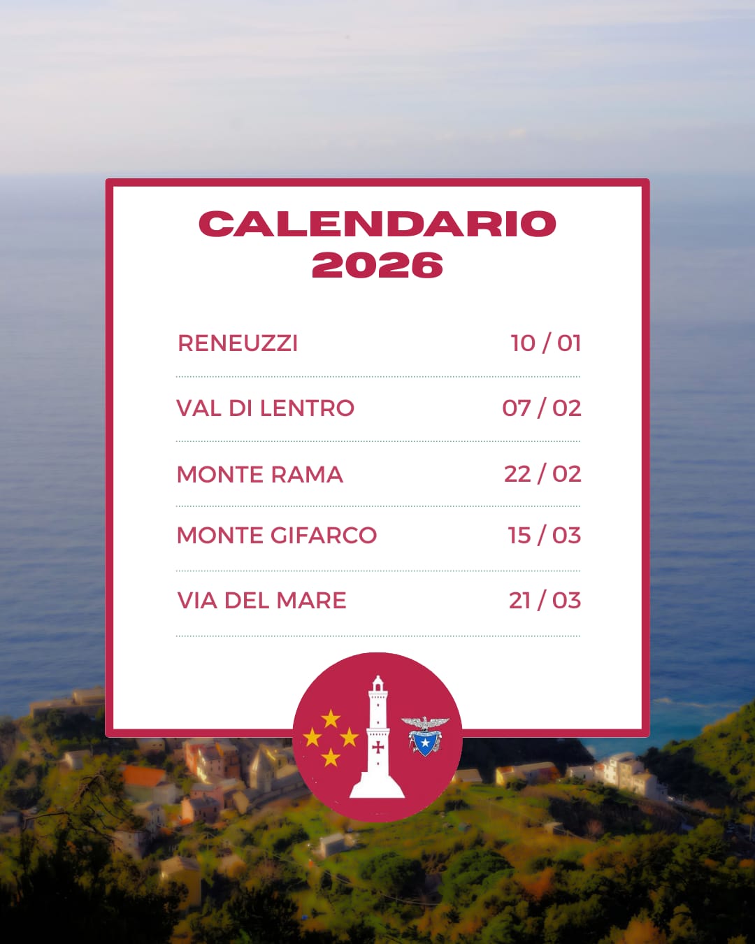 - Calendario condiviso Gruppi Giovani della Ligurai QUI
